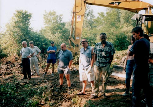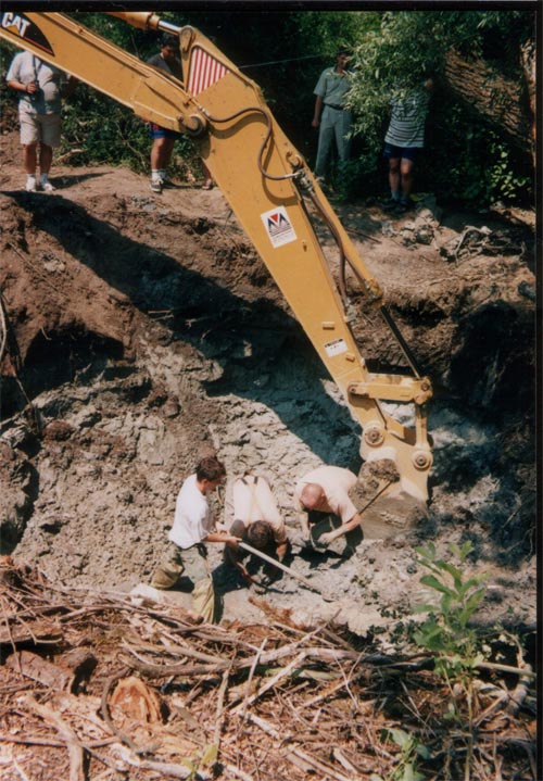 Több reagálás nem jött, csak a kiemelés tervezett időpontja közeledett vészesen. Megjegyezzük, az elutasító levél 2003. május 27-én datálódott, mi pedig június 7-én kellett, hogy nekiálljunk a feltárásnak. Más időpont nem jöhetett szóba. Sajnos a várt pénzösszeg, ami 200000Ft lett volna és ezt sem kaptuk meg az államtól teljesen felborította az egyensúlyt. Így nem tudtunk markológépet bérelni, ami alapvető kelléke a feltárásnak. A mocsaras terület miatt a szivattyúzásra is gondolnunk kellett. Ezek a tárgyi eszközök. A másik nagy problémánk az volt, hogy a krátert fűzfás, bozótos terület vette körbe, így a munkaterületet ki kellett tisztítani.