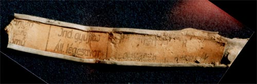 Az adattáblák egytől egyig német nyelvűek, de! Előkerült az első magyar nyelvű tábla, mely nem kézi festésű volt. Tartalma két szó: fékszárny, vezérsík. Sajnos nagyon roncsolódott, de mégis arra engedett következtetni, hogy tán mégis csak győri gyártású volt a Messzer. A szakirodalom szerint az akkoriban, tehát 1944 nyarán használt gépek magyar gyárban lettek összeépítve, javarészt német alkatrészekből. A talán bizonyító erejű leletet, ill. feliratot Bálint unokám találta. Amikor kikaparta a földből, egy girbegurba alumínium lemezcsík volt. Bekerült a többi közé a zacskóba. Miután hazaértünk, azonnal vizesvödörbe borította és mosogatta kincseit. Egyszer csak szól.