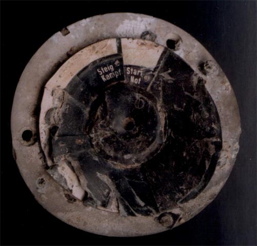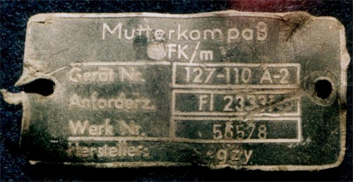 Az egyik adattábla főcíme a „Mutterkompass” volt. Sajnos az anyatájoló nem került elő, darabokra tört az is a többi műszerrel együtt. Egyetlen jellegzetes töredékét találtam meg, a folyadék feltöltő csonkot.