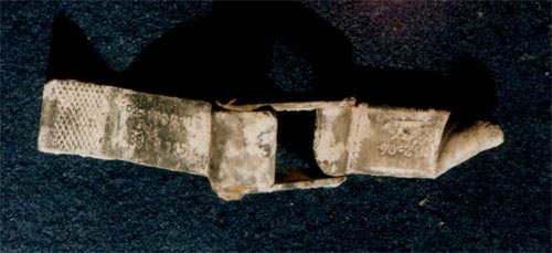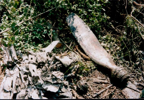 Van még egy érdekes dolog, amiről meg kell emlékezni. A szárny java része a felszínen szétszóródott kisebb nagyobb darabokban. Néhány darabját azért megtaláltuk a föld mélyén. Természetesen, csak a fajsúlyos darabok kerülhettek oda, történetesen a főtartó darabjai, amik kovácsoltvasból készültek. A fizika törvényei szerint ezek a darabok lövedékként csapódtak a talajba. Érdekességként megemlítem, hogy a hatalmas ütések következtében kagylós törésűek a főtartó darabjai.